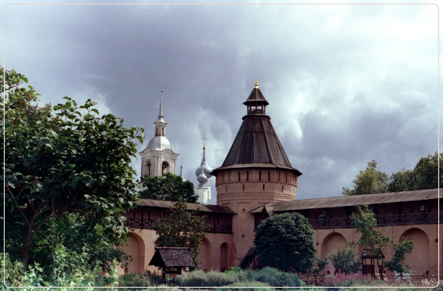 Красные стены Спасо-Евфимиевского монастыря едва прикрывают высоту множества куполов. Внутри стен ещё более тихая жизнь. Здесь вполне могли бы жить павлины. Внутри всё аккуратно, без излишеств. Здесь есть небольшая пекарня с красивой выпечкой. Внутри звонница, и с неё звонарь успокаивает души всех тех, кому здесь не повезло когда-то оказаться.